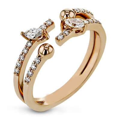 Notable right hand fashion ring in 14K. white gold with white round bright diamonds of 0.18ctw and 0.13ctw of brilliantly carved center stone marquise diamonds. Also available in Yellow and Rose gold.